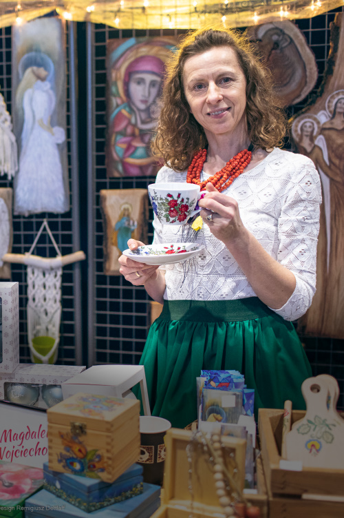 - Promowałam Wielkopolskę z okazji Narodowego Święta Niepodległości w Warszawie w Pałacu Prezydenckim na zaproszenie Urzędu Marszałkowskiego Województwa Wielkopolskiego. Prezentowałam tradycyjny strój biskupiański oraz zaprojektowaną przeze mnie kolekcję malowanych stylizacji inspirowanych Biskupizną łącząca tradycję z nowoczesnością.